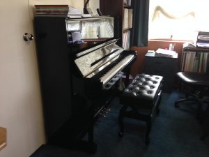 It’s equipped with two pianos, a Schimmel upright and a Kawai RX-2 grand piano.